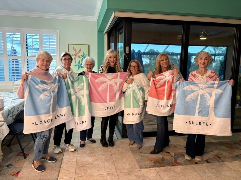 All in all, this was a huge success for Lemon Bay Playhouse, and in the end we all got together to celebrate. Pam gave everyone their own beach towel! All pictured here with Dottie Warner, our wonderful State Manager (without whom the show would not run)!